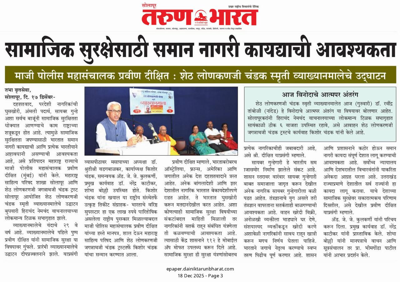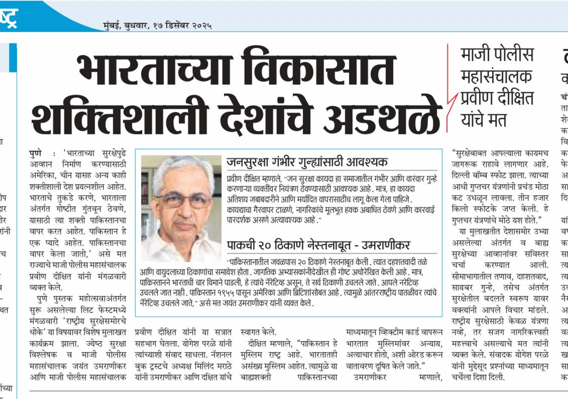 Praveen Dixit, IPS retired as DGP Maharashtra. He also worked as DG Anti Corruption Bureau. Mr Dixit is decorated with President’s Medal for Distinguished Services and for Meritorious Services. Special Rapporteur, National Human Rights Commission, in charge of Maharashtra and Goa. Mr Dixit also retired as Vice Chairman (Administrative) in Maharashtra Administrative Tribunal at Mumbai.